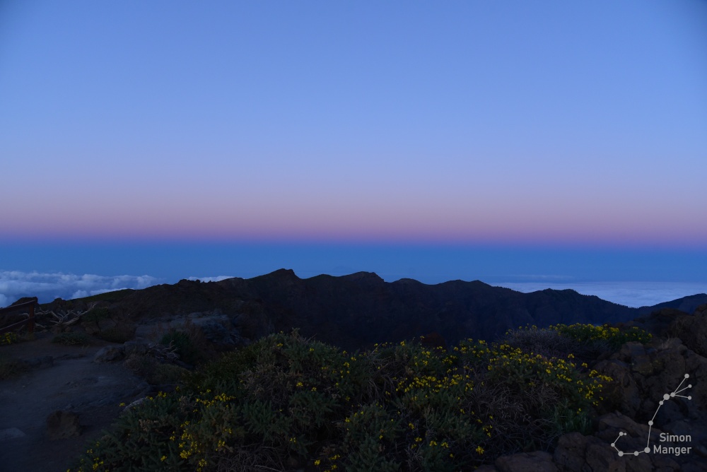 Die Gegebenheiten am Beobachtungsplatz waren exzellent, wobei dies unterschiedliche Gründe hat. Zum einen ist es so, dass das Areal bzw. die Insel über 2.000 Meter aus dem Meer herausragt. Große Mengen der Atmosphäre und deren Inhalte wie Dampf und Staub befinden sich somit unterhalb, weshalb die Transparenz des Himmels sehr gut war. Hierbei hatte ich aber auch großes Glück, denn im gleichen Zeitraum zogen große Mengen an Saharastaub nördlich der Kanarischen Inseln vorbei in Richtung Festland.