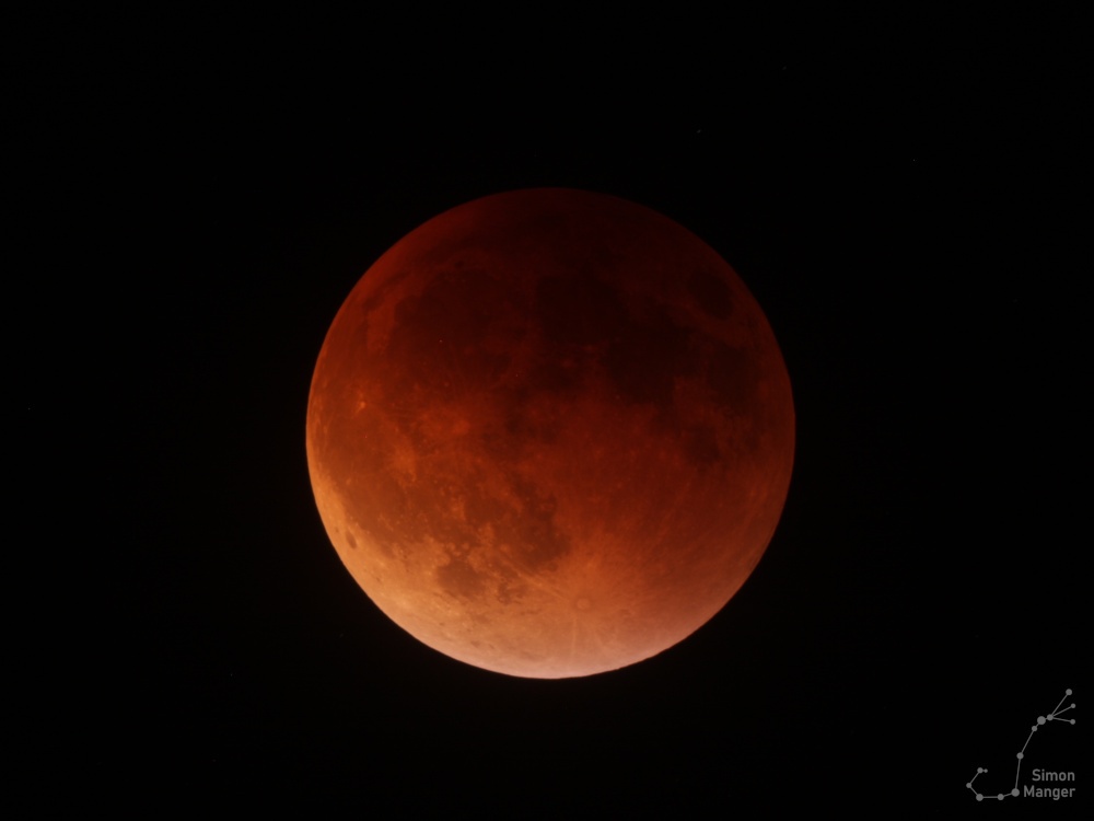 Anfangs sah es so aus, als ob der Mond angefressen wurde. Erst später zeigte er sich wie eine Mondphase. Mit fortlaufendem Eintritt in den Erdschatten kam zudem die rötliche Färbung zum Vorschein. Es war sehr beeindruckend, wie nicht nur der Mond dunkler wurde, sondern auch der Rest des Himmels. Im Westen war knapp über dem Horizont noch ein Teil der Sommermilchstraße sichtbar, der im Verlauf der Verfinsterung immer deutlicher hervortrat. Insbesondere in der ersten Hälfte der Finsternis beobachtete ich den Mond immer wieder mit dem Teleskop. Auch wenn durch die fehlenden Schatten auf dem Mond die Plastizität der Oberflächendetails fehlte, war es immer wieder schön, bei hoher Vergrößerung die Mondoberfläche abzufahren. Gelegentlich musste ich die Belichtungszeiten an der Kamera nachstellen, die ansonsten vollautomatisch arbeitete. Die meiste Zeit über verbrachte ich warm eingepackt im mitgebrachten Sessel, um dem Schauspiel am Himmel zu folgen. Es ist herrlich, die Nacht unter sternklarem Himmel zu verbringen. Egal wo man sich befindet, man fühlt sich geborgen und entspannt.