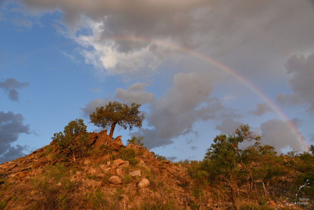Der zweite Teil meiner Reise nach Namibia drehte sich voll und ganz um die Astronomie. Hierzu hatte ich mich für drei Wochen auf Hakos, einer Gästefarm die sich auf die Astronomie spezialisiert hat, einquartiert. Doch bevor es soweit kommen sollte, musste ich erst von der Kalahari-Wüste zurück in die Hauptstadt Windhuk. Zusammen mit Göran Lindström, dem schwedischen Gepardenflüsterer, mit dem ich mehrere Wochen zusammen arbeitete, ging es mit weit über 100 km/h über frisch abgezogene Schotterpisten. Dort angekommen, kam ich für die kommende Nacht in einem Hostel unter. Bevor Göran weiter zum Flughafen fuhr, ließen wir bei einem kühlen Bier die vergangenen Wochen unserer Arbeit mit den Geparden Revue passieren.
